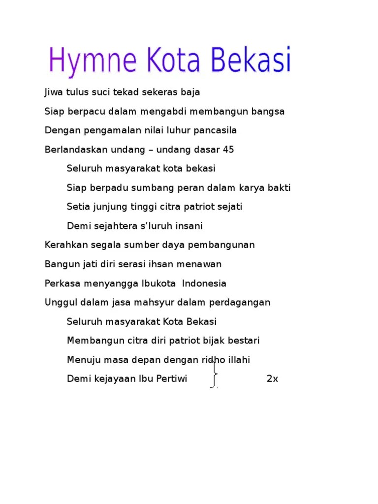 30/7/2021 · mars kabupaten bekasimars dan hymne kabupaten bekasi selalu dibawakan saat acara penting di kabupaten bekasi.